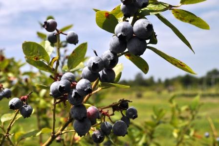 The secret to beautiful colored berries in baked goods is proper pH. Blueberries turn reddish when exposed to acids, such as lemon juice and vinegar. Blueberries turn greenish-blue in a batter that has too much baking soda, which creates an alkaline environment.
